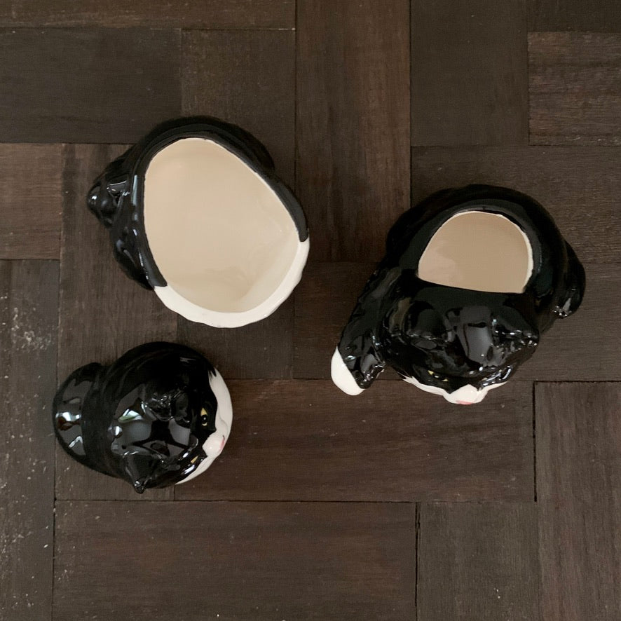 1点ずつ手作業で絵付けされた、ハチワレ猫ちゃんのシュガー&ミルクセットです。